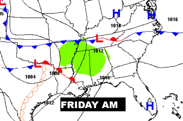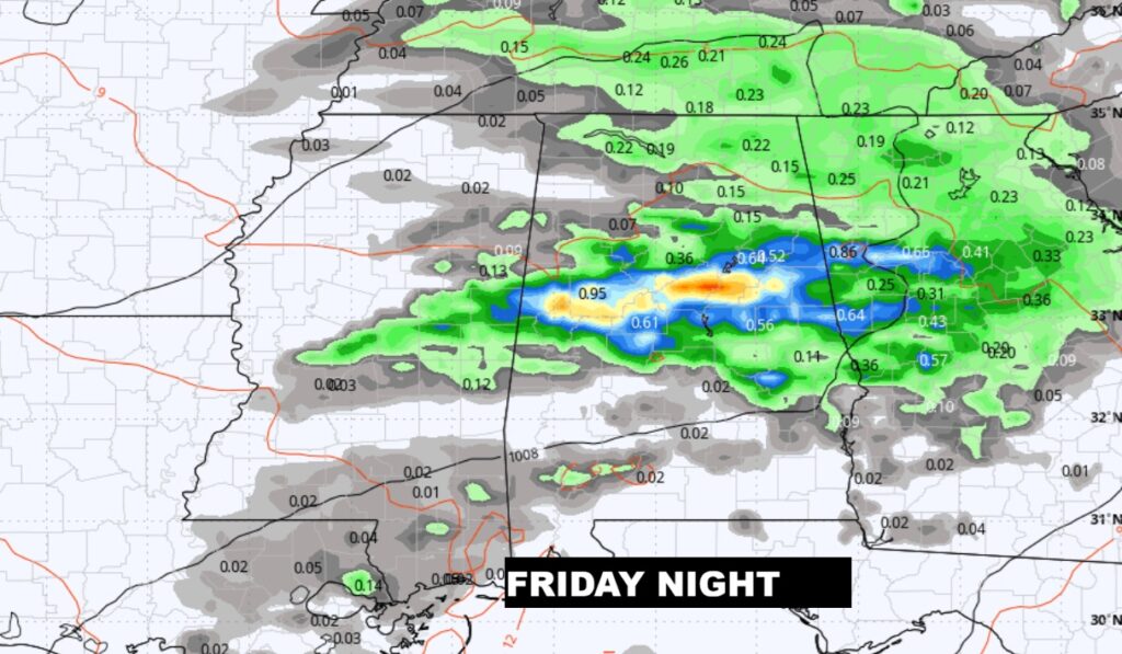 Here’s the evolution of that next storm system over Texas to over Alabama Saturday AM.