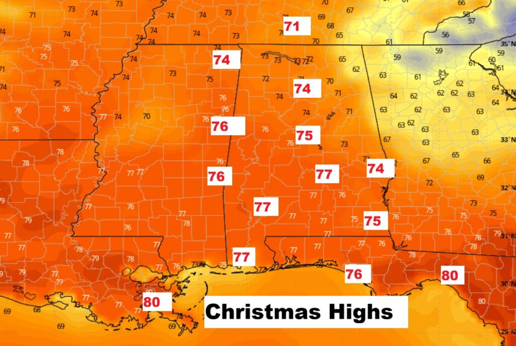 Take a look at the remarkable projected high temperatures across the Southeast US Christmas afternoon.
