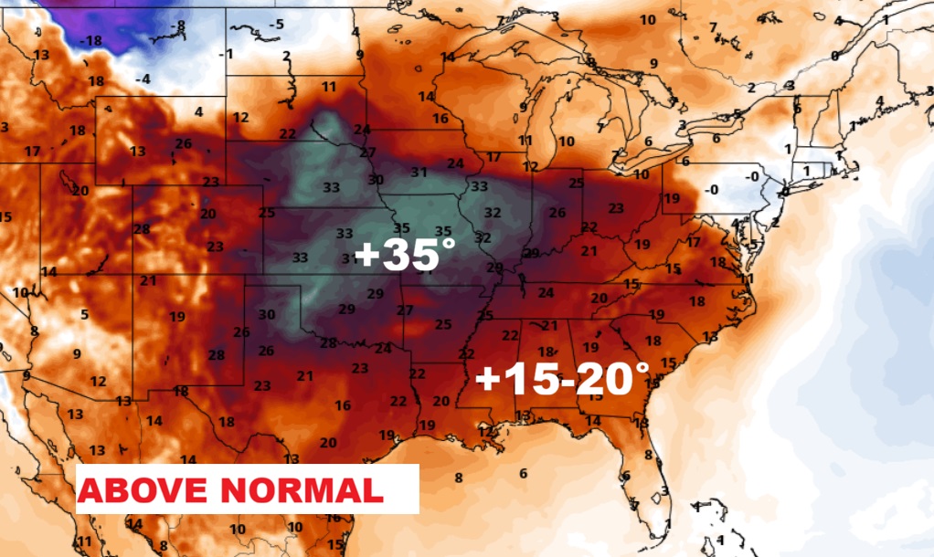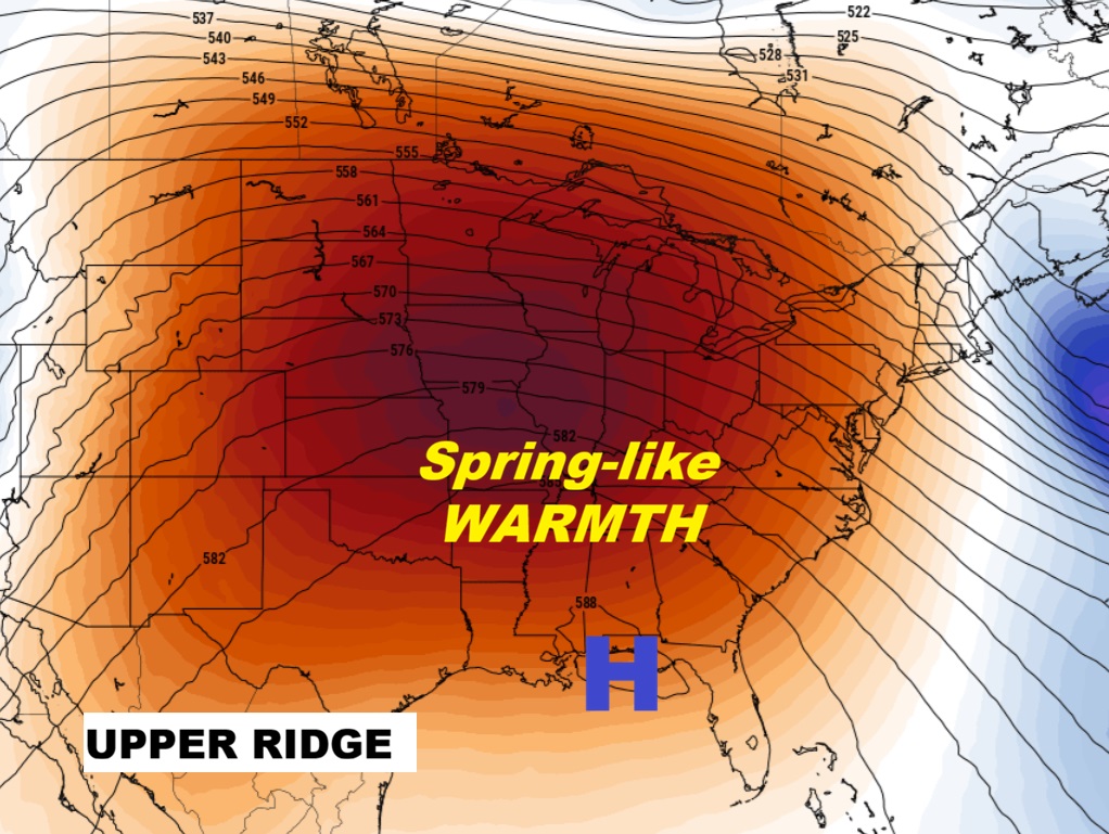 An Amazing ridge of upper ridge of high pressure will be in control. Temperatures over the America Heartland will be running 25-30 degrees above normal.
