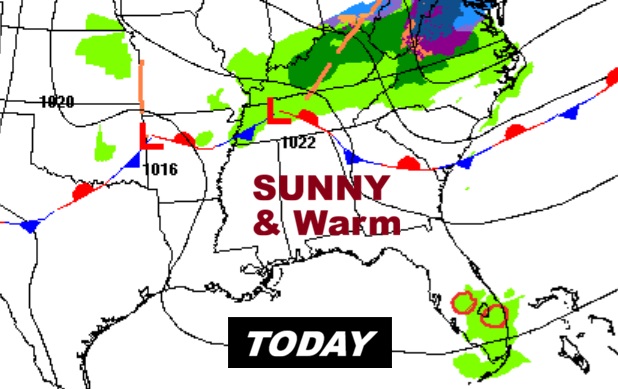 TODAY: Sunny and warm. High 78. SE wind 5 to 10 mph.