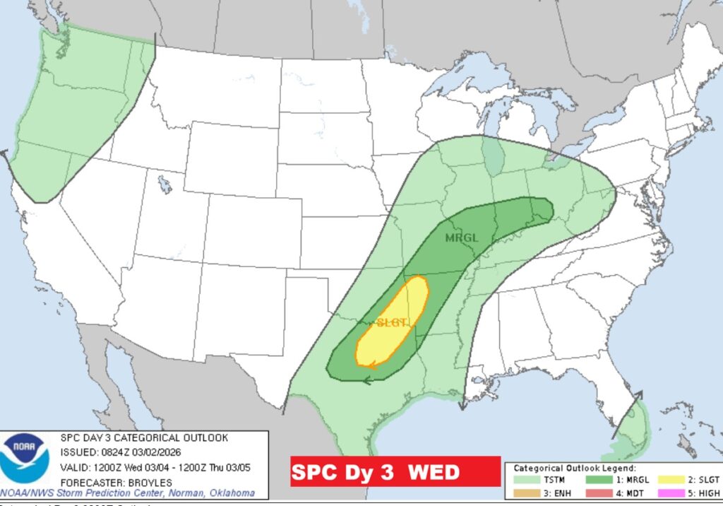 Any potential Severe Weather threat will hold off for now. But we’ll be watching developments in the middle part of the country closely Wednesday and beyond. Potential “issues” here now seem delayed by the models.