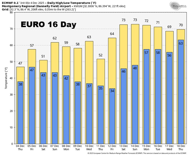 The EURO model gives us at least some hope for more reasonable temperatures toward mid December. Let’s hope so.