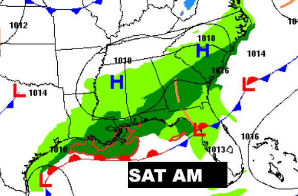 A series of Lows will hug the Gulf Coast today through Sunday.