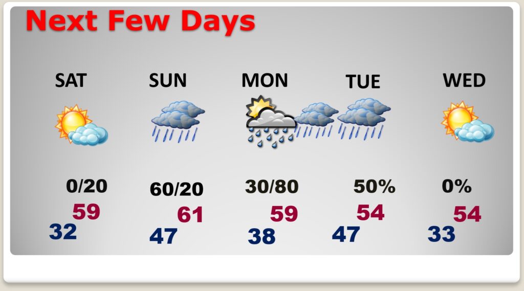 FRIDAY Update:  Chilly Days – Cold Nights – Rain returns Sunday