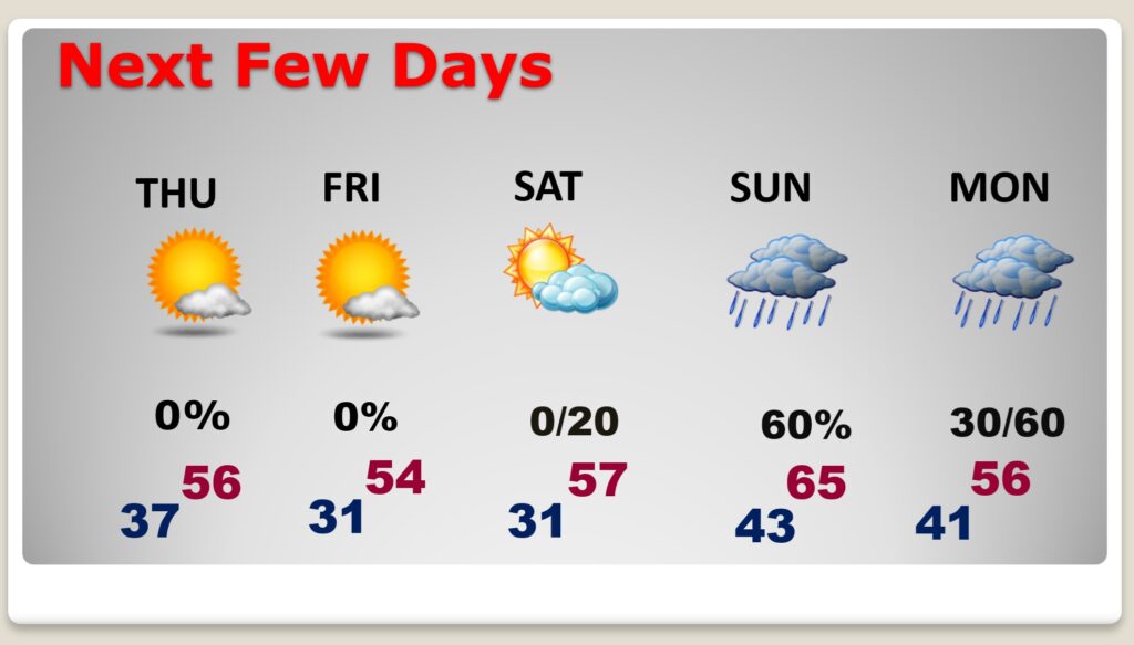 We’ll be close to a freeze by Black Friday dawn. It will be quite cool though Iron Bowl weekend with Cold nights. (Normal hi/lo 67/41) Next chance off rain Sunday and Monday especially Monday night into Tuesday. Best chance of rain 60% Sunday and 60% Sunday Night.